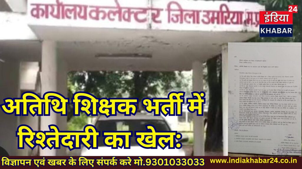 शहडोल / उमरिया अतिथि शिक्षक भर्ती प्रक्रिया में योग्यता के बजाय रिश्तेदारी को प्राथमिकता दिए जाने के लगातार लग रहे आरोप। बड़वाही प्रभारी प्राचार्य पर यह आरोप है कि वे स्टाफ के रिश्तेदारों को अतिथि शिक्षक पद दिलाने के लिए योग्य एवं पूर्व से कार्यरत उम्मीदवारों को नजरअंदाज कर रहे हैं।