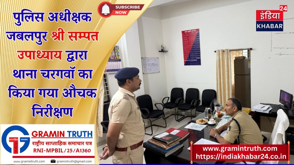 पुलिस अधीक्षक जबलपुर श्री सम्पत उपाध्याय (भा.पु.से.) द्वारा आज दिनॉक 3-9-2025 को थाना चरगवॉ का औचक निरीक्षण किया गया। निरीक्षण के दौरान थाना प्रभारी चरगवॉ उप निरीक्षक अभिषेक प्यासी उपस्थित थे। आपने मालखाने का निरीक्षण करते हुये जप्ती माल, आर्म्स एम्यूनेशन, राईट ड्रिल सामग्री का रख रखाव चैक करते हुये हवालात चैक किया, साथ ही थाने में संधारित किये जाने वाले रजिस्टरों को चैक किया कि थाने में संधारित किये जाने वाले रजिस्टर अपडेट हैं कि नहीं।